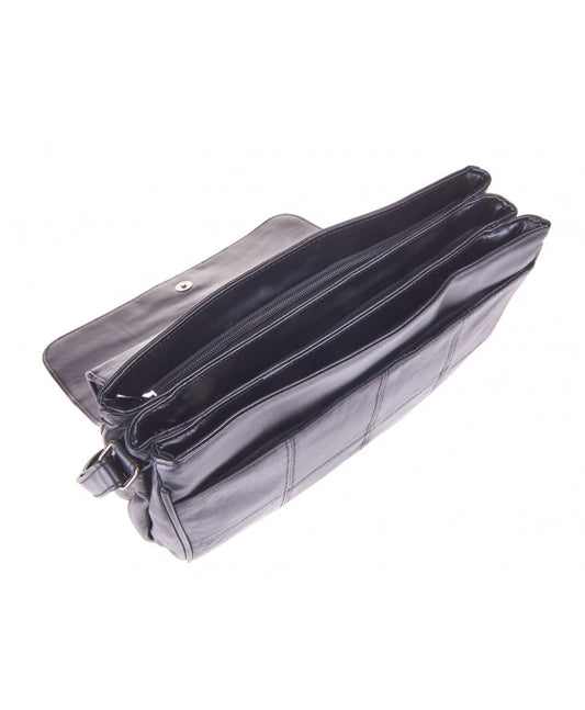 Lorenz Sheep Nappa Flapover Bag with 3 Inner Zips, Back Zip & Side Zip Pocket-New Bargain Price