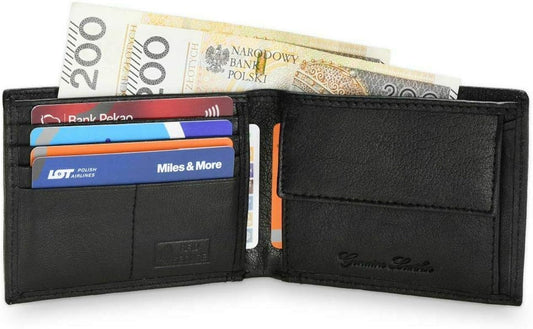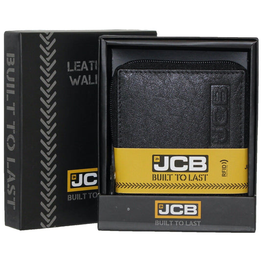 Mens RealLeather Wallet JCB RFID Wallet Coin Purse ID Holder Zip Wallet Black