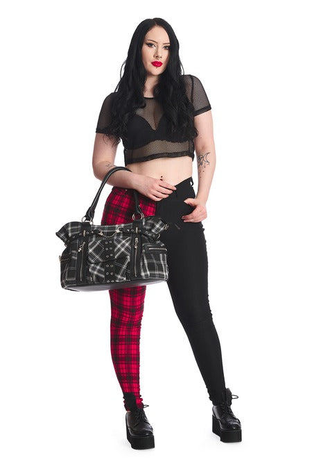 The Banned Rise Up Bag takes classic tartan and cranks it up with grunge energy. Featuring a bold blue-black plaid, reinforced faux leather handles, and grommet-covered straps with silver hardware, this streetwise handbag is made for rebellion on the go. Twin zip pockets and a central front flap pocket add both edge and practicality, while the slouchy silhouette keeps things casual. Whether you re moshing in the pit or storming the pavement, Rise Up is ready for the ride.